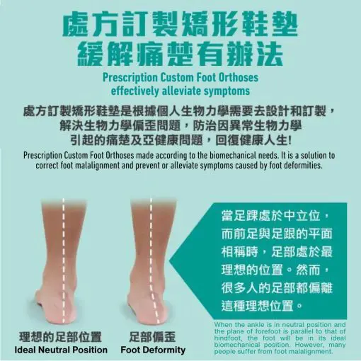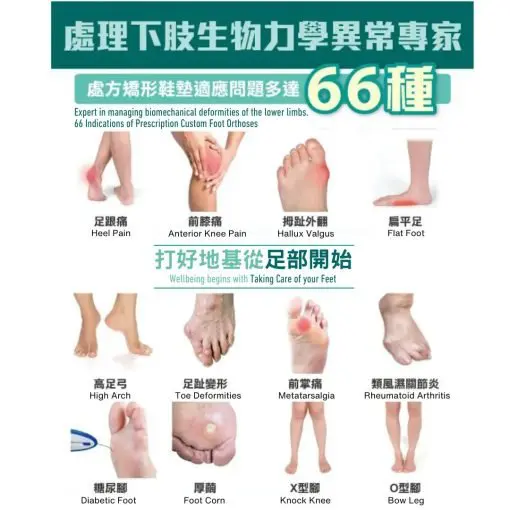 處方矯形鞋墊有別於預製鞋墊,美國註冊足科矯形師跟據從案主中套取足模及數據,再按個人不同需要及情況作處方。不同鞋墊處方,對應不同足患!